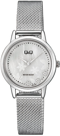 Zegarek damski QZ57-201 marki Q&Q to stylowe połączenie funkcjonalności oraz ciekawego designu. Atrakcyjny wygląd zegarka uzyskano również dzięki tarczy w kolorze białym. Zegarek ten pokazuje godzinę w formacie analogowym dzięki temu odczyt jest bezproblemowy. Koperta jest w kolorze srebrnym szeroka jest na 30 mm oraz ma grubość 7.7 mm - ma okrągły kształt.