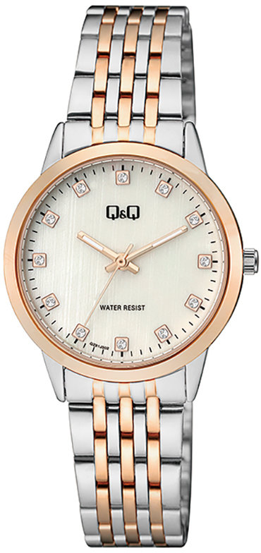 Zegarek QZ81-402 posiada kwarcowy mechanizm zasilany tradycyjną baterią. Wytrzymała bransoleta koloru srebrno złotego wytworzona ze stali szlachetnej gwarantuje wysoką jakość oraz trwałość.