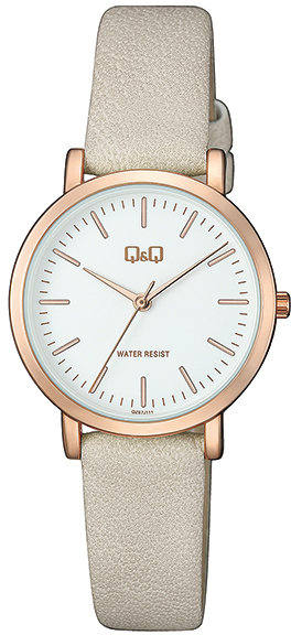 Zegarek QZ87-111 wyposażony jest w mechanizm zasilany tradycyjną baterią kwarcową. Pasek beżowego koloru wykonany jest z wysokiej jakości tworzywa sztucznego.