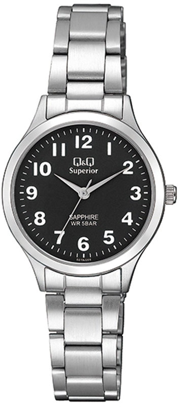 Model S279-205 marki Q&Q to stylowy zegarek naręczny damski, który wyposażono w ciekawe rozwiązania i funkcje. Niestereotypowy wygląd czasomierza uzyskano także dzięki tarczy w kolorze czarnym. Zegarek ten prezentuje aktualny czas w formacie analogowym dzięki temu odczyt jest bezproblemowy. Koperta jest ozdobiona kolorem srebrnym szeroka jest na 30 mm oraz ma grubość 7.5 mm - w kształcie okrągłym.
