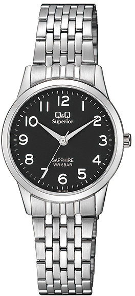 Model S281-205 marki Q&Q to gustowny zegarek naręczny damski, który wyposażono w ciekawe rozwiązania i funkcje. Atrakcyjny wygląd czasomierza uzyskano m.in. poprzez cyferblat w kolorze czarnym. Godzina prezentowana jest w sposób analogowy co niezmiernie łatwo pozwala ją odczytać. Koperta jest w kolorze srebrnym szeroka jest na 30 mm oraz ma grubość 7.7 mm - ma okrągły kształt.