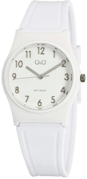 Zegarek VP34-071 posiada kwarcowy mechanizm zasilany klasyczną baterią. Pasek białego koloru zrobiony jest z wysokiej jakości tworzywa sztucznego.