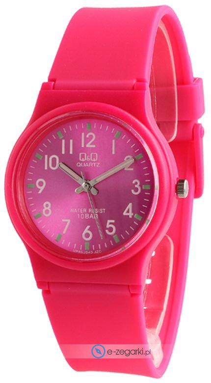 Zegarek VP46-043 zasilany jest bateryjnie - ogniwo kwarcowe. WR 100 oznacza, że zegarek pozwala na pełne zanurzenie w wodzie, pływanie oraz nurkowanie z rurką - snorkeling, czyli bez akwalungu.