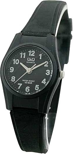 Zegarek damski VQ03-004 marki Q&Q to dobre połączenie funkcjonalności a także modnego designu. Wysokiej trwałości cyferblat zegarka pokryto czarnym kolorem. Zegarek ten prezentuje godzinę w formacie analogowym dzięki temu odczyt jest intuicyjny. Koperta w odcieniach koloru czarnego szeroka jest na 24 mm - cechuje się okrągłym kształtem.