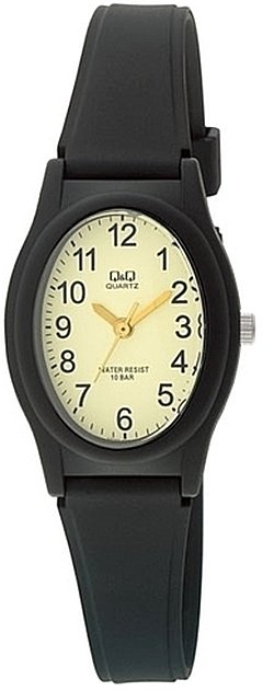 Model VQ77-003 marki Q&Q to elegancki zegarek naręczny damski, który posiada ciekawe rozwiązania oraz funkcje. Godzina przedstawiona jest w sposób analogowy co intuicyjnie pozwala ją odczytać. Koperta jest pokryta kolorem czarnym szeroka jest na 29 mm - charakteryzuje się owalnym kształtem.