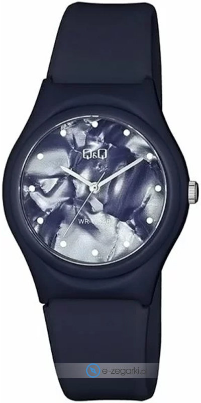 Damski zegarek Q&Q VQ86-046 to zegarek, który dzięki swemu wzornictwu zawsze będzie prezentował się dobrze. Atrakcyjną stylistykę czasomierza osiągnięto z pomocą tarczy w kolorze niebieskim. Pokazana metodą analogową aktualna godzina jest czytelna i prosta do odczytania. Koperta została pokryta kolorem niebieskim szeroka jest na 34 mm oraz ma grubość 10 mm - wyróżnia się okrągłym kształtem.