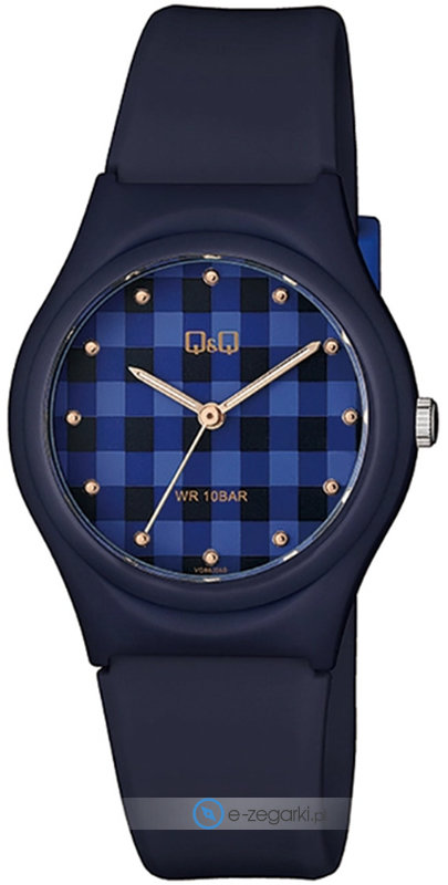 Model VQ86-050 posiada mechanizm zasilany klasyczną baterią kwarcową. Pasek jest w kolorze niebieskim wykonany jest z wysokiej jakości tworzywa sztucznego.