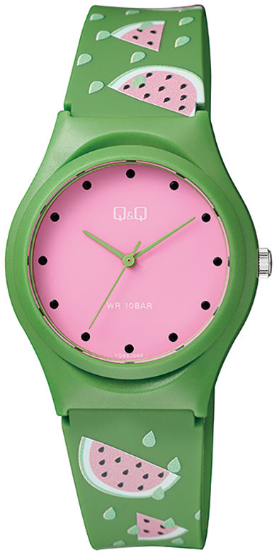 Zegarek VQ86-066 posiada kwarcowy mechanizm zasilany klasyczną baterią. Pasek jest w kolorze różowym wykonany jest z wysokiej jakości tworzywa sztucznego.
