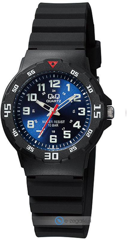 Damski zegarek Q&Q VR19-005 to zegarek, który dzięki swemu wzornictwu zawsze będzie prezentował się dobrze. Cyferblat zegarka jest w kolorze niebieskim. Godzina pokazywana jest w sposób analogowy co niezmiernie łatwo pozwala ją odczytać. Koperta została ozdobiona kolorem czarnym szeroka jest na 33 mm oraz ma grubość 9.25 mm - charakteryzuje się okrągłym kształtem.
