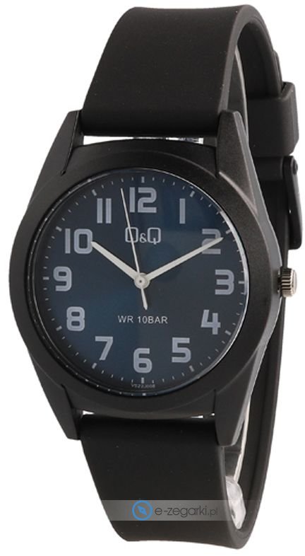 Zegarek VS22-008 posiada kwarcowy mechanizm zasilany standardową baterią. Pływanie na basenie gwarantuje klasa wodoszczelności WR 100.