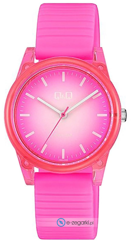 Zegarek VS62-008 zasilany jest bateryjnie - ogniwo kwarcowe. Pasek różowego koloru zrobiony jest z wysokiej jakości tworzywa sztucznego.