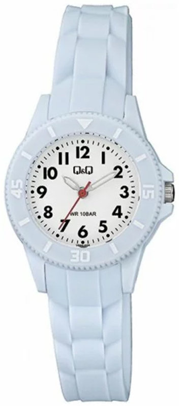 Zegarek damski VS66-007 marki Q&Q to dobre połączenie funkcjonalności a także ciekawego wzornictwa. Nieschematyczny wygląd zegarka osiągnięto także dzięki tarczy w kolorze białym. Aktualna godzina przedstawiona jest w sposób analogowy co intuicyjnie pozwala ją odczytać. Koperta jest w kolorze niebieskim szeroka jest na 30 mm oraz ma grubość 10 mm - w kształcie okrągłym.