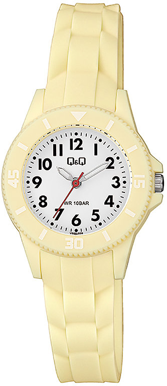 Zegarek VS66-008 posiada kwarcowy mechanizm zasilany standardową baterią. Pasek zółtego koloru wykonany jest z wysokiej jakości tworzywa sztucznego.