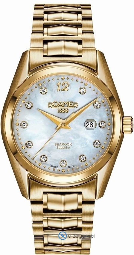 Model 203844 48 19 20 marki Roamer to elegancki zegarek naręczny damski, który jest wyposażony w ciekawe rozwiązania oraz funkcje. Charakter zapewnia wysokiej klasy cyferblat w kolorze perłowym. Koperta szeroka jest na 34 mm oraz ma grubość 10 mm - w kształcie okrągłym.