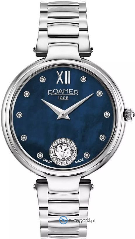 Zegarek damski 600843 41 49 50 marki Roamer to dobre połączenie funkcjonalności a także modnego wzornictwa. Stylu nadaje wysokiej jakości tarcza w kolorze niebieskim. Zegarek ten pokazuje aktualny czas w formacie analogowym dzięki czemu odczyt jest intuicyjny. Koperta została ozdobiona kolorem srebrnym - cechuje się okrągłym kształtem.