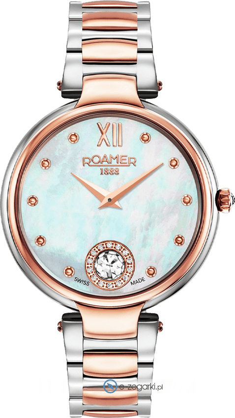 Zegarek damski 600843 49 19 50 marki Roamer to stylowe połączenie funkcjonalności a także modnego wzornictwa. Ciekawy wygląd zegarka osiągnięto m.in. poprzez tarczę w kolorze perłowym. Aktualna godzina zaprezentowana jest w sposób analogowy co intuicyjnie pozwala ją odczytać. Koperta szeroka jest na 38 mm - wyróżnia się okrągłym kształtem.