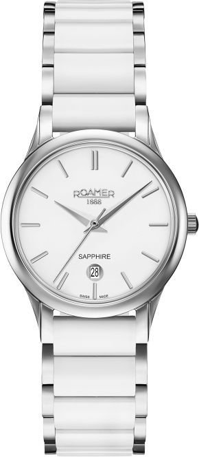 Model 657844 41 25 60 marki Roamer to stylowy zegarek naręczny damski, który posiada pomysłowe rozwiązania oraz funkcje. Stylu nadaje wysokiej jakości tarcza w kolorze białym. Godzina prezentowana jest w sposób analogowy co niezmiernie łatwo pozwala ją odczytać. Koperta jest w kolorze stalowym szeroka jest na 30 mm oraz ma grubość 7 mm - cechuje się okrągłym kształtem.