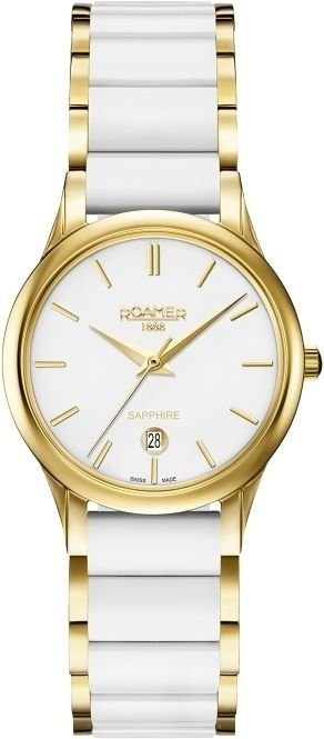 Zegarek damski 657844 48 25 60 marki Roamer to dobra propozycja dla osób ceniących sobie dbałość o szczegóły oraz sprawne działanie mechanizmów. Stylu nadaje wysokiej klasy tarcza w kolorze białym. Koperta szeroka jest na 30 mm - cechuje się okrągłym kształtem.