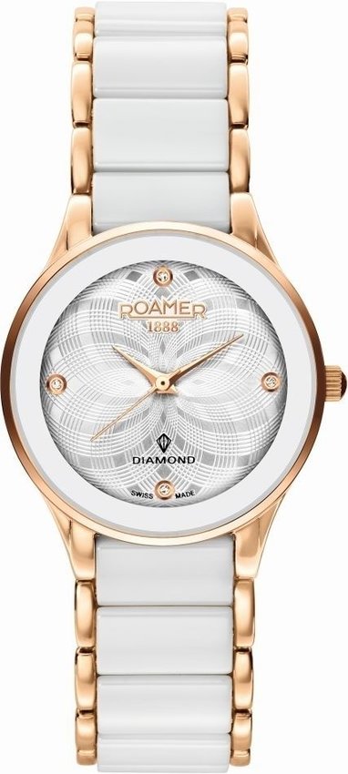 Model 677981 49 20 60 marki Roamer to gustowny zegarek naręczny damski, który jest wyposażony w pomysłowe rozwiązania i funkcje. Tarcza zegarka w kolorze białym. Koperta szeroka jest na 30 mm oraz ma grubość 7 mm - cechuje się okrągłym kształtem.