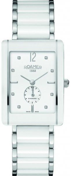 Model 690855 41 29 60 marki Roamer to stylowy zegarek naręczny damski, który jest wyposażony w pomysłowe rozwiązania i funkcje. Wysokiej trwałości cyferblat zegarka ozdobiono białym kolorem. Koperta szeroka jest na 25 mm oraz ma grubość 8 mm - posiada prostokątny kształt.