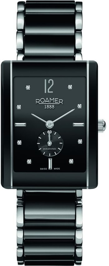 Damski zegarek Roamer 690855 41 59 60 to zegarek, który dzięki swemu wzornictwu zawsze będzie prezentował się dobrze. Niebanalną konstrukcję zegarka osiągnięto dzięki tarczy w kolorze czarnym. Koperta szeroka jest na 25 mm oraz ma grubość 8 mm - wyróżnia się prostokątnym kształtem.