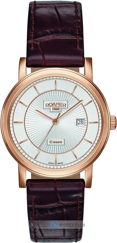 Zegarek damski 709844 49 17 07 marki Roamer to idealne połączenie funkcjonalności oraz ciekawego designu. Model ten w gamie innych zegarków tego producenta występuje w kolekcji Classic Line Ladies. Nieschematyczny wygląd czasomierza uzyskano poprzez tarczę w kolorze białym. Koperta szeroka jest na 30 mm oraz ma grubość 7 mm - posiada okrągły kształt.