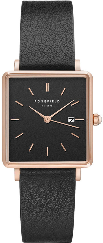 Rosefield QBBR-Q10 to damski zegarek przeznaczony dla osób szukających zegarka z kolekcji Rosefield Boxy. Niebanalny wygląd zegarka osiągnięto również dzięki tarczy w kolorze czarnym. Godzina zaprezentowana jest w sposób analogowy co intuicyjnie pozwala ją odczytać. Koperta w barwach koloru różowo złotego szeroka jest na 12 mm oraz ma grubość 7 mm - posiada prostokątny kształt.