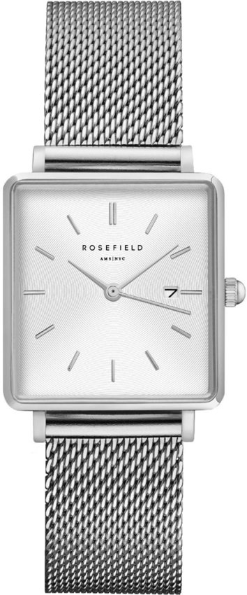 Zegarek damski QWSS-Q02 marki Rosefield to dobre połączenie funkcjonalności a także modnego designu. Model ten w gamie innych zegarków tego producenta występuje w serii Rosefield Boxy. Charakteru nadaje wysokiej klasy tarcza w kolorze szarym. Zegarek ten prezentuje godzinę w formacie analogowym dzięki temu odczyt jest bardzo łatwy. Koperta jest w kolorze stalowym szeroka jest na 12 mm oraz ma grubość 7 mm - posiada prostokątny kształt.