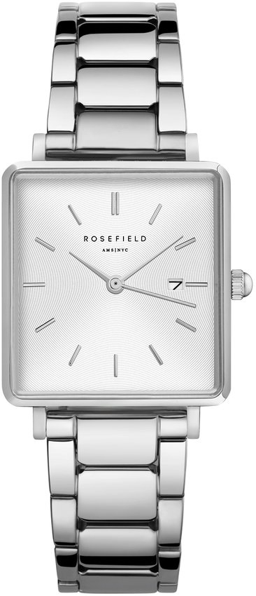 Zegarek damski QWSS-Q042 marki Rosefield to idealne połączenie funkcjonalności a także modnego designu. Wysokiej jakości tarczę zegarka pokryto szarym kolorem. Godzina pokazywana jest w sposób analogowy co intuicyjnie pozwala ją odczytać. Koperta jest pokryta kolorem srebrnym szeroka jest na 22 mm oraz ma grubość 7 mm - charakteryzuje się prostokątnym kształtem.