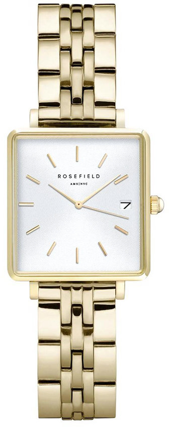 Zegarek BMWLBG-X241 marki Rosefield to gustowny zegarek naręczny damski, który jest wyposażony w pomysłowe rozwiązania i funkcje. Model ten należy do kolekcji Rosefield Mini Boxy. Charakteru dodaje wysokiej jakości cyferblat w kolorze szarym. Godzina prezentowana jest w sposób analogowy co bez trudu pozwala ją odczytać. Koperta w odcieniach koloru złotego szeroka jest na 22 mm oraz ma grubość 6 mm - posiada prostokątny kształt.