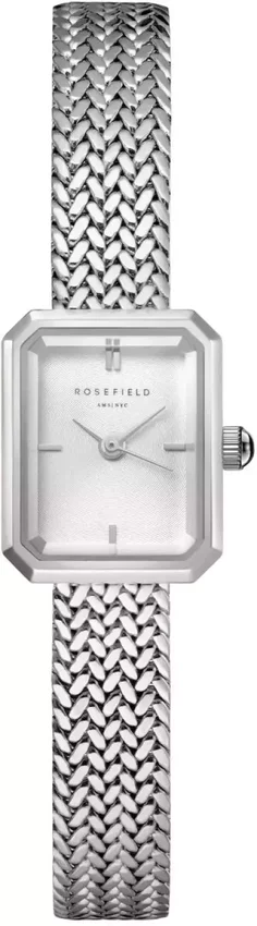 Zegarek damski MWSMS-M04 marki Rosefield to stylowe połączenie funkcjonalności oraz modnego designu. Model ten jest z serii Rosefield Minis. Atrakcyjny wygląd czasomierza uzyskano także dzięki tarczy w kolorze białym. Zegarek ten pokazuje godzinę w formacie analogowym dzięki czemu odczyt jest bardzo łatwy. Koperta w barwach koloru srebrnego szeroka jest na 15 mm oraz ma grubość 7 mm - w kształcie prostokątnym.