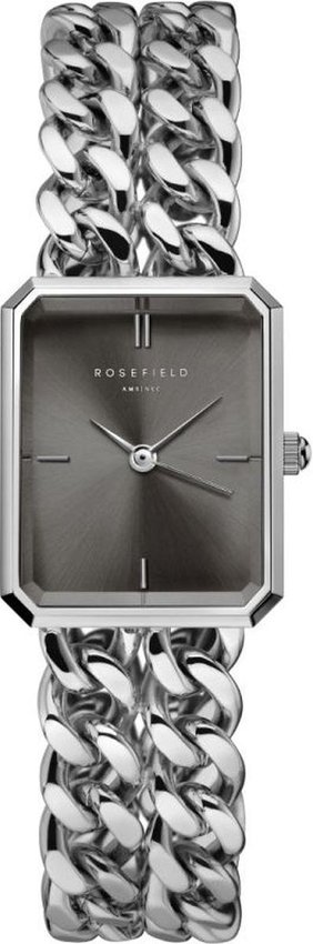 Rosefield SGSSS-O78 - damski zegarek kierowany dla osób szukających zegarka z serii Rosefield Octagon XS. Wysokiej trwałości tarczę zegarka ozdobiono szarym kolorem. Zaprezentowana metodą analogową bieżąca godzina jest czytelna i prosta do odczytania. Koperta jest w kolorze srebrnym szeroka jest na 19.5 mm oraz ma grubość 7 mm - w kształcie prostokątnym.