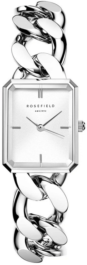 Zegarek damski SWSSS-O56 zalicza się do serii Rosefield Octagon XS marki Rosefield. Charakter zapewnia wysokiej jakości tarcza w kolorze białym. Pokazana metodą analogową bieżąca godzina jest czytelna i łatwa do sprawdzenia. Koperta jest w kolorze srebrnym szeroka jest na 20 mm oraz ma grubość 7 mm - cechuje się prostokątnym kształtem.