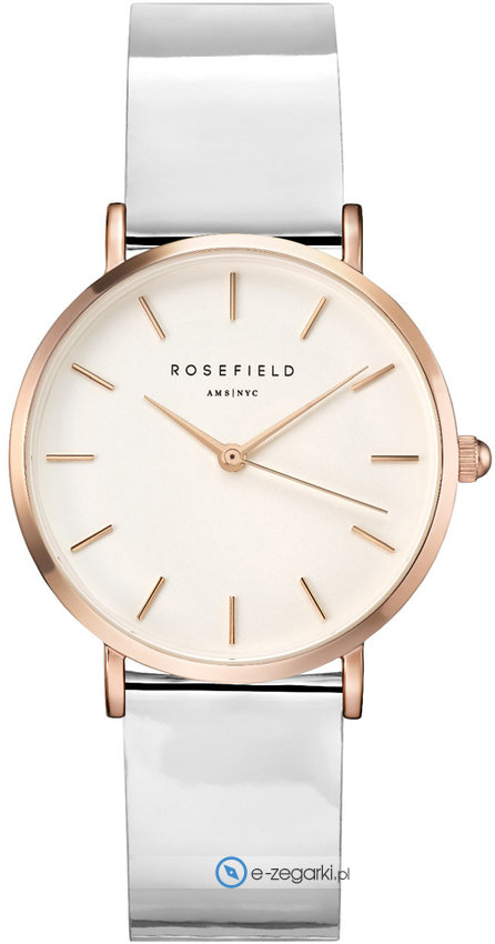 Model SHMWR-H35 marki Rosefield to elegancki zegarek naręczny damski, który posiada ciekawe rozwiązania i funkcje. Stylu nadaje wysokiej jakości tarcza w kolorze białym. Koperta szeroka jest na 33 mm oraz ma grubość 7 mm - ma okrągły kształt.