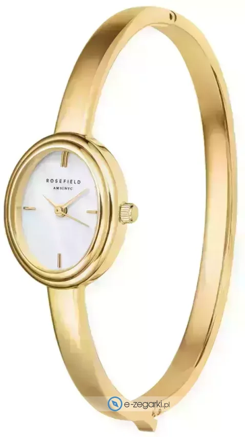 Zegarek damski STWGSG-ST04 Small marki Rosefield to idealne połączenie funkcjonalności a także modnego wzornictwa. Model ten pochodzi z serii Rosefield Studio. Styl zapewnia wysokiej jakości cyferblat w kolorze perłowym. Godzina prezentowana jest w sposób analogowy co niezmiernie łatwo pozwala ją odczytać. Koperta została ozdobiona kolorem złotym szeroka jest na 20 mm oraz ma grubość 8 mm - wyróżnia się owalnym kształtem.