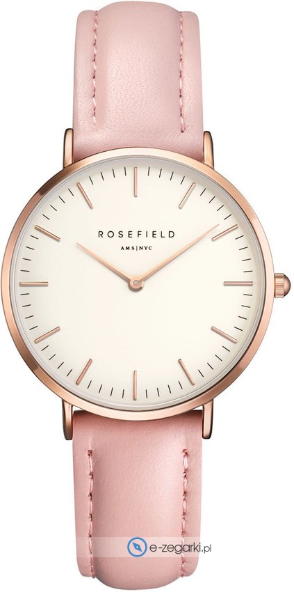 Rosefield TWPR-T58 - damski zegarek przeznaczony dla osób szukających zegarka z serii Rosefield Tribeca. Cyferblat zegarka jest w kolorze białym. Zegarek ten prezentuje godzinę w formacie analogowym dzięki temu odczyt jest bezproblemowy. Koperta w odcieniach koloru różowo złotego szeroka jest na 33 mm oraz ma grubość 7 mm - w kształcie okrągłym.