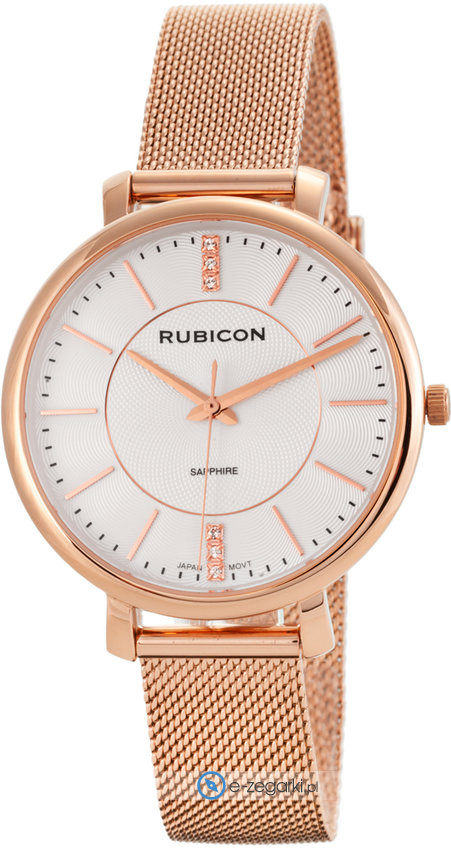 Model RBN148 marki Rubicon to stylowy zegarek naręczny damski, który posiada pomysłowe rozwiązania i funkcje. Cyferblat zegarka jest w kolorze srebrnym. Zaprezentowana metodą analogową bieżąca godzina jest czytelna i szybka do odczytania. Koperta w odcieniach koloru różowo złotego szeroka jest na 36 mm oraz ma grubość 8 mm - wyróżnia się okrągłym kształtem.