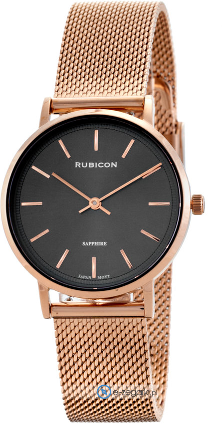 Model RBN150 marki Rubicon to elegancki zegarek naręczny damski, który posiada ciekawe rozwiązania i funkcje. Charakter zapewnia wysokiej klasy tarcza w kolorze szarym. Aktualna godzina prezentowana jest w sposób analogowy co intuicyjnie pozwala ją odczytać. Koperta jest pokryta kolorem różowo złotym szeroka jest na 37 mm oraz ma grubość 8 mm - wyróżnia się okrągłym kształtem.