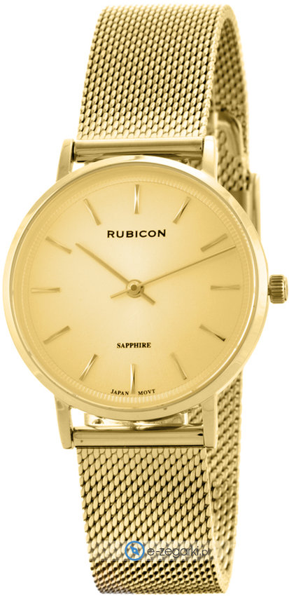 Damski zegarek Rubicon RBN211 to zegarek, który dzięki swemu wzornictwu zawsze będzie prezentował się dobrze. Charakter zapewnia wysokiej jakości cyferblat w kolorze złotym. Zaprezentowana metodą analogową aktualna godzina jest czytelna i szybka do odczytania. Koperta jest ozdobiona kolorem złotym szeroka jest na 32 mm oraz ma grubość 7 mm - charakteryzuje się okrągłym kształtem.