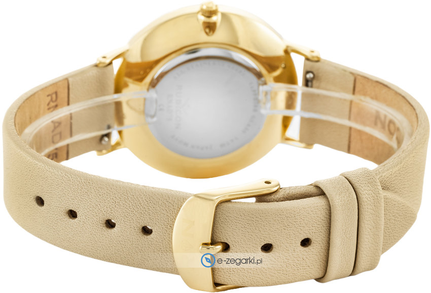 Zegarek damski RNAD75GISX03BX marki Rubicon to dobra propozycja dla ludzi ceniących sobie dbałość o szczegóły a także bezproblemowe działanie mechanizmów. Wysokiej jakości tarczę zegarka ozdobiono srebrnym kolorem. Zaprezentowana metodą analogową aktualna godzina jest czytelna i prosta do sprawdzenia. Koperta jest pokryta kolorem złotym szeroka jest na 38 mm - w kształcie okrągłym.