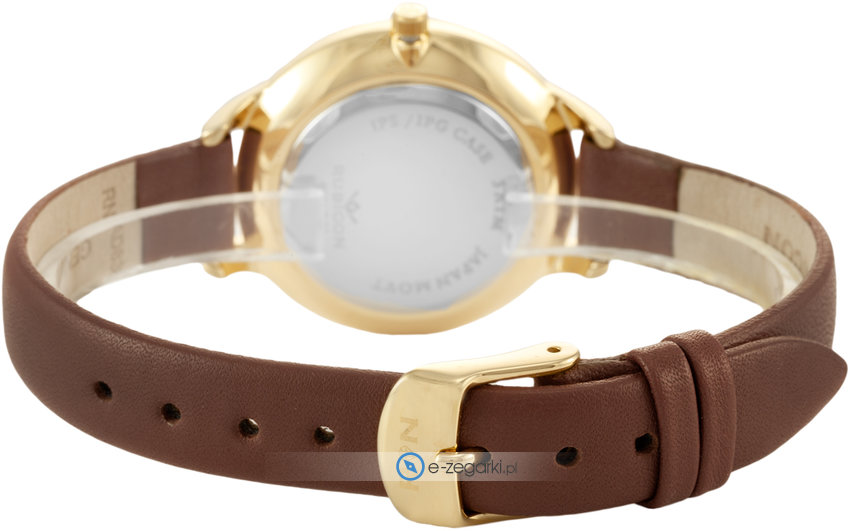 Zegarek damski RNAD83GISX03BX marki Rubicon to idealne połączenie funkcjonalności a także modnego wzornictwa. Nieschematyczny wygląd zegarka uzyskano m.in. poprzez cyferblat w kolorze srebrnym. Zegarek ten prezentuje aktualny czas w formacie analogowym dzięki czemu odczyt jest intuicyjny. Koperta w barwach koloru złotego szeroka jest na 33 mm - posiada okrągły kształt.