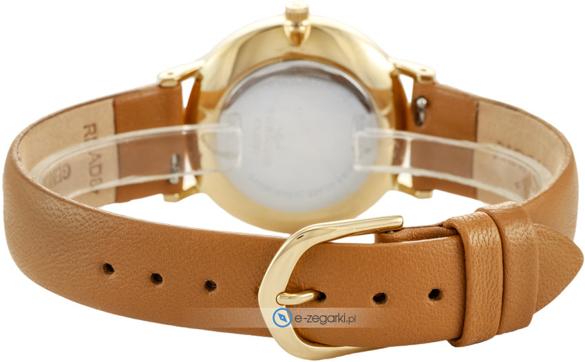 Model RNAD87GISX03BX posiada mechanizm zasilany klasyczną baterią kwarcową. Pasek wykonany jest z wysokiej klasy skóry zapewniającej trwałość i komfort użytkowania.