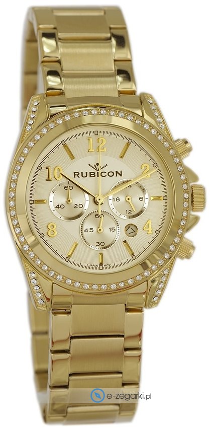 Model RNBD01GMGX03AX marki Rubicon to stylowy zegarek naręczny damski, który jest wyposażony w pomysłowe rozwiązania oraz funkcje. Niestereotypowy wygląd zegarka uzyskano m.in. poprzez tarczę w kolorze złotym. Pokazana metodą analogową bieżąca godzina jest czytelna i łatwa do odczytania. Koperta w barwach koloru złotego szeroka jest na 41 mm - cechuje się okrągłym kształtem.