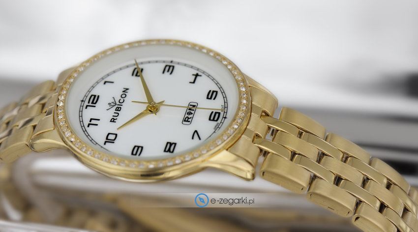 Damski zegarek Rubicon RNBD07GAWX03BX to zegarek, który dzięki swemu wzornictwu zawsze będzie prezentował się dobrze. Styl zapewnia wysokiej klasy tarcza w kolorze białym. Pokazana metodą analogową bieżąca godzina jest czytelna i prosta do odczytania. Koperta jest ozdobiona kolorem złotym szeroka jest na 31 mm oraz ma grubość 8 mm - cechuje się okrągłym kształtem.