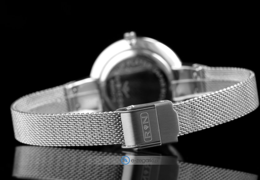 Kwarcowa bateria umieszczona w zegarku RNBD74SIDX03BX zapewnia zasilanie jego mechanizmu. Odporna na korozję oraz oddziaływanie czynników atmosferycznych bransoleta w tonacji koloru srebrnego cechuje się jakością, a także trwałością.