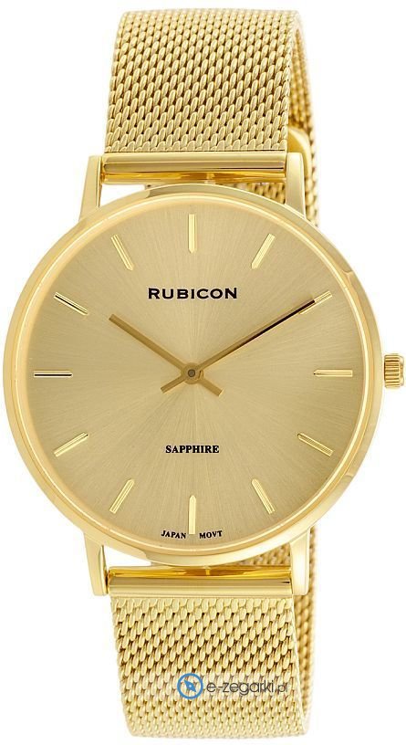 Zegarek damski RNBD76GIGX03BX marki Rubicon to stylowe połączenie funkcjonalności a także modnego wzornictwa. Charakterystyczny wygląd zegarka osiągnięto m.in. poprzez tarczę w kolorze złotym. Koperta w barwach koloru złotego szeroka jest na 37 mm oraz ma grubość 8 mm - cechuje się okrągłym kształtem.