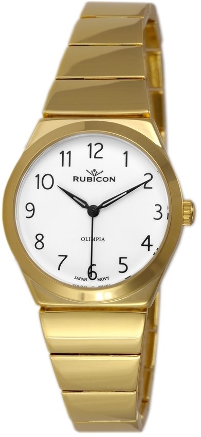 Model RNBD80GAWX03BX marki Rubicon to elegancki zegarek naręczny damski, który jest wyposażony w pomysłowe rozwiązania oraz funkcje. Wysokiej jakości tarczę zegarka ozdobiono białym kolorem. Godzina prezentowana jest w sposób analogowy co bez trudu pozwala ją odczytać. Koperta została pokryta kolorem złotym szeroka jest na 34 mm - wyróżnia się okrągłym kształtem.
