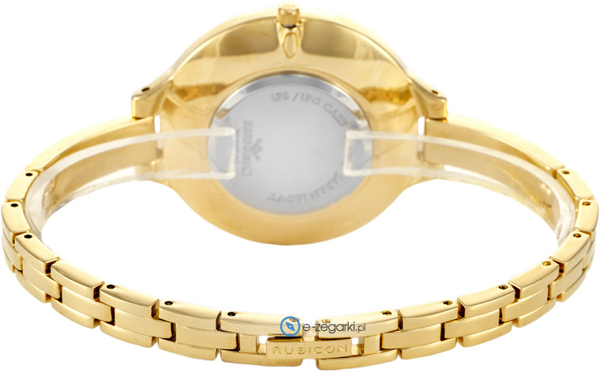 Model RNBD84GISX03BX marki Rubicon to stylowy zegarek naręczny damski, który jest wyposażony w pomysłowe rozwiązania i funkcje. Charakter zapewnia wysokiej jakości cyferblat w kolorze srebrnym. Zegarek ten prezentuje godzinę w formacie analogowym dzięki czemu odczyt jest bezproblemowy. Koperta jest w kolorze złotym szeroka jest na 35 mm - posiada okrągły kształt.