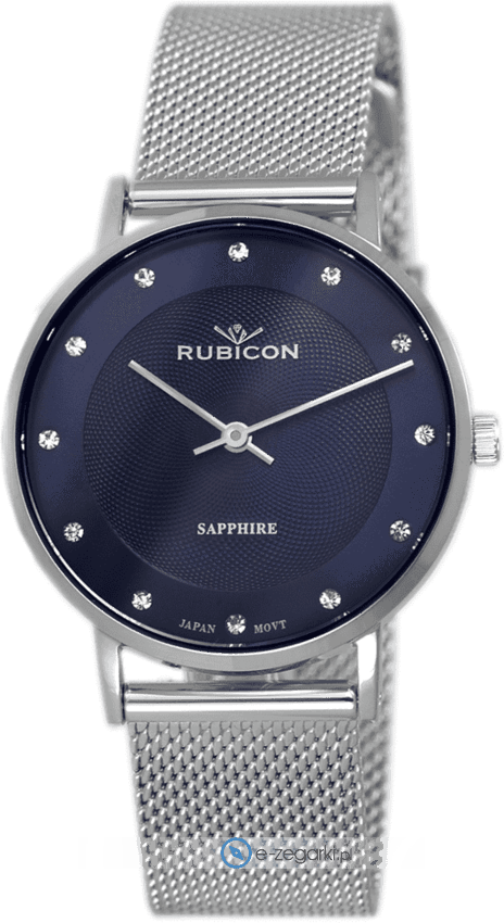 Model RNBD88SIDX03BX marki Rubicon to stylowy zegarek naręczny damski, który posiada pomysłowe rozwiązania i funkcje. Wysokiej trwałości tarczę zegarka ozdobiono granatowym kolorem. Godzina zaprezentowana jest w sposób analogowy co bez trudu pozwala ją odczytać. Koperta w barwach koloru srebrnego szeroka jest na 32 mm oraz ma grubość 7 mm - posiada okrągły kształt.
