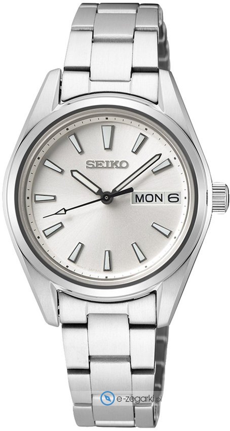 Zegarek damski SUR349P1 marki Seiko należy do rodziny Seiko Classic. Nieschematyczny wygląd czasomierza osiągnięto także dzięki tarczy w kolorze srebrnym. Aktualna godzina prezentowana jest w sposób analogowy co bez trudu pozwala ją odczytać. Koperta została ozdobiona kolorem srebrnym szeroka jest na 30 mm oraz ma grubość 8 mm - w kształcie okrągłym.